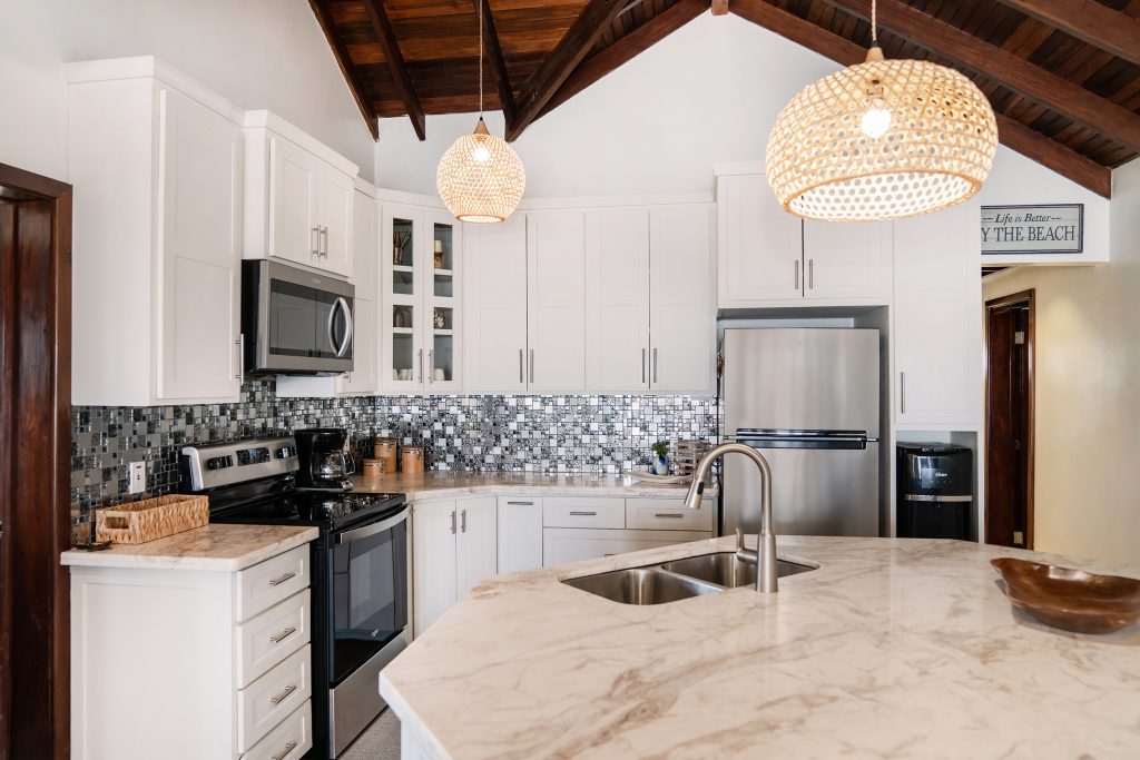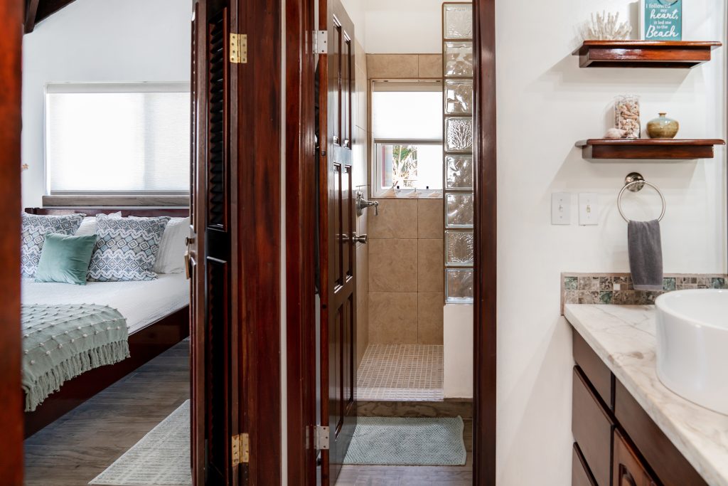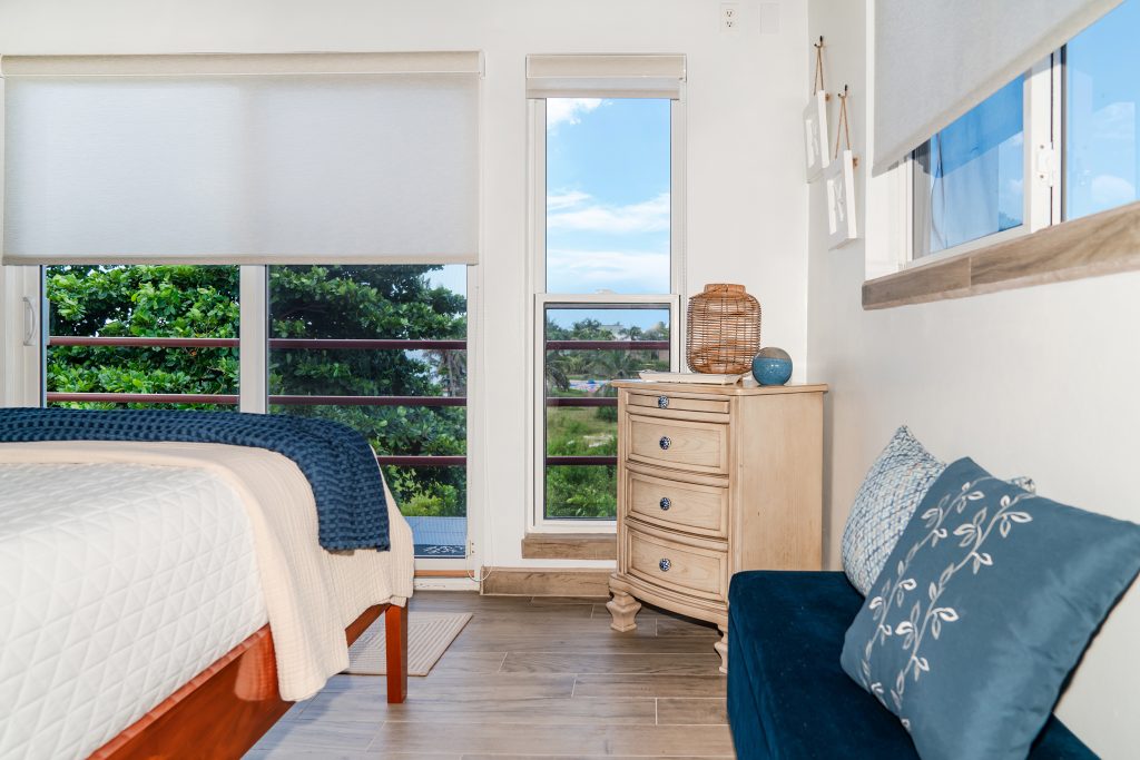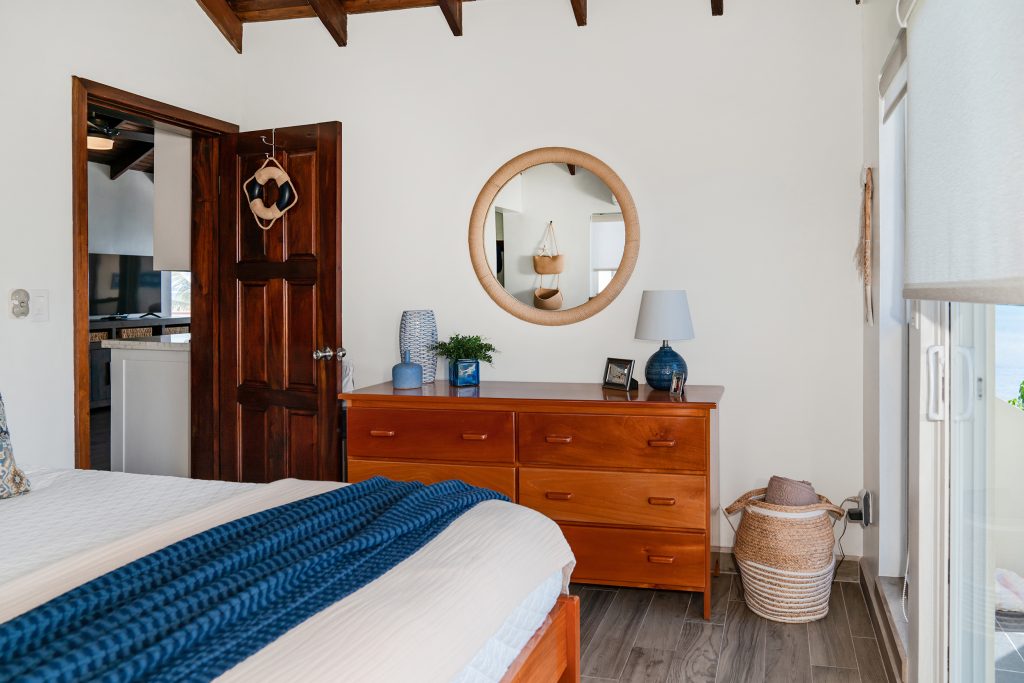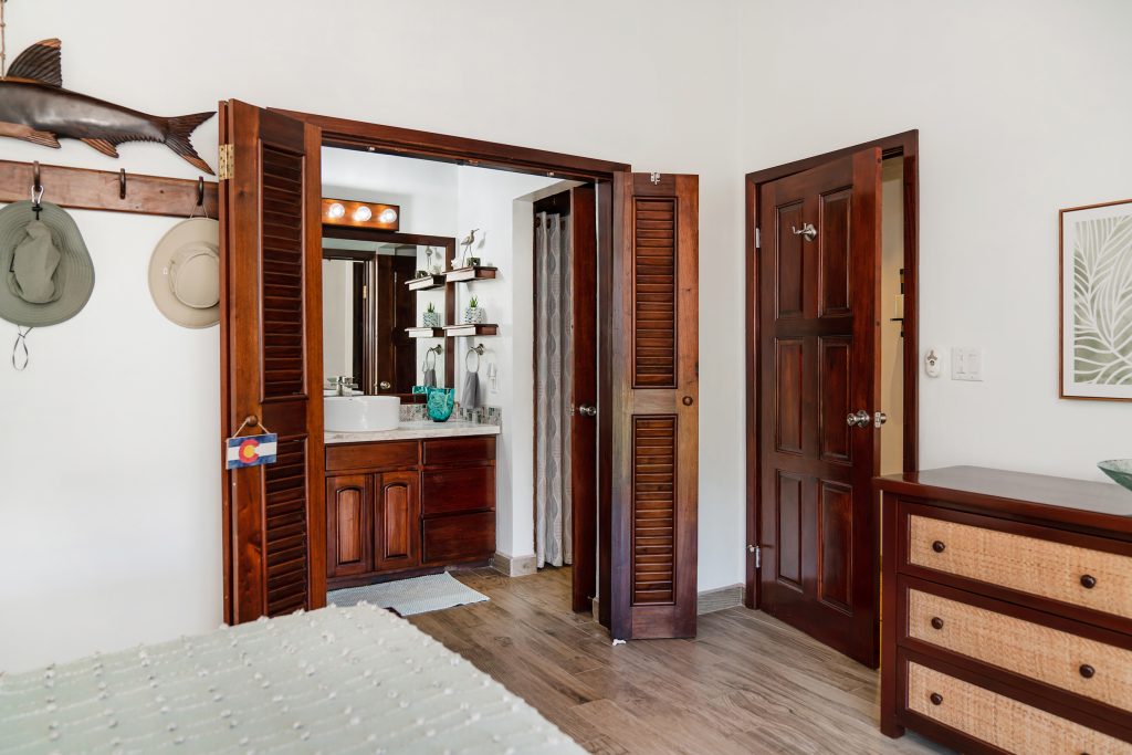 This penthouse unit at Tres Cocos Resort sits on the top floor with no neighbors above, offering uninterrupted ocean views and complete peace from upstairs noise. Five separate verandas wrap around the unit, giving you the perfect spot to catch the sunrise over the Caribbean, watch the sunset from the opposite side, or simply enjoy the breeze wherever it’s blowing that day.