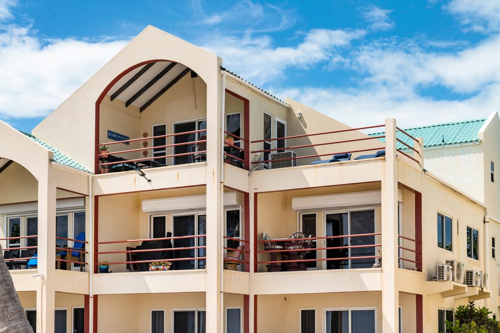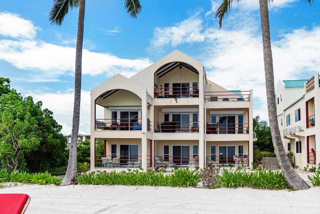 Exterior Features: Five private verandas, shared pool, rooftop deck access, direct beachfront access, private parking/garage, storage area, on-site generator, and gated entry.